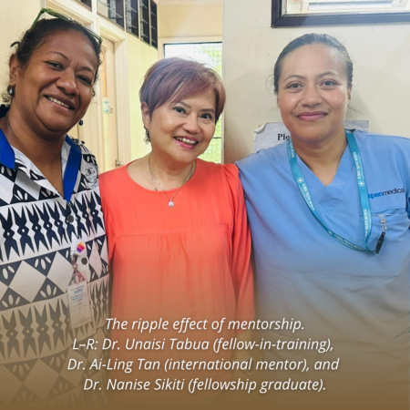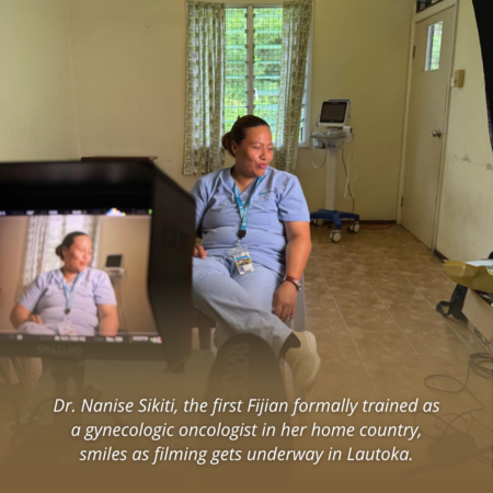 We ultimately chose Fiji — home to Dr. Nanise Sikiti, the first Fijian to be formally trained as a gynecologic oncologist within her home country, utilizing the IGCS Global Curriculum. The film follows Dr. Sikiti alongside one of her international mentors Dr. Ai Ling Tan and the newest IGCS fellow, Dr. Unaisi Tabua.